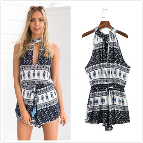 ebay速賣通爆款女裝夏季新款歐美風(fēng)印花無袖連體褲 LF-2528 /