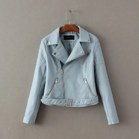 秋冬新款時尚百搭歐美風(fēng)斜拉鏈翻領(lǐng)短款機車皮衣 女 /