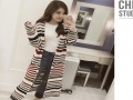 秋冬新品韓版中長(zhǎng)款V領(lǐng)彩色條紋針織衫開(kāi)衫外套毛衣女 /