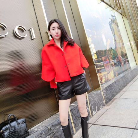 秋冬新款原創(chuàng)大牌女裝 披肩斗篷女短款蝙蝠袖毛呢外套 /