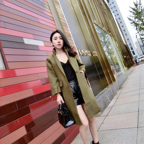 冬季新款長袖大衣 歐韓風中長款女式大衣羊毛呢料外套批發(fā) /