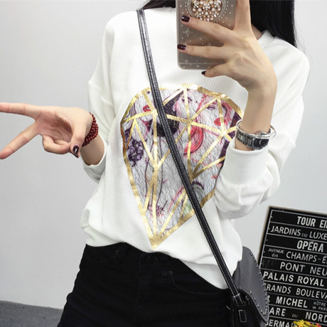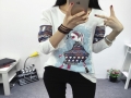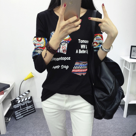 秋季新款韓版拼接外穿女裝百搭打底衫寬松長袖t恤女 /