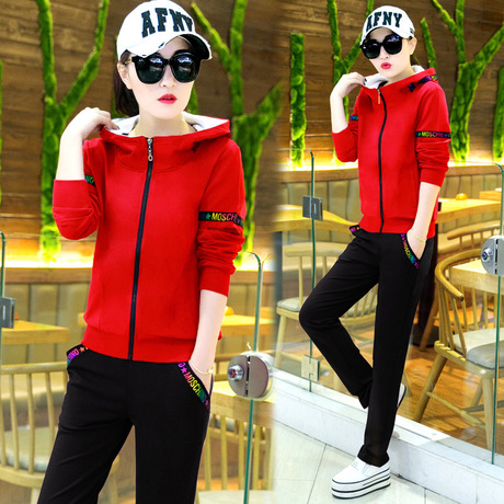 款韓版休閑運(yùn)動(dòng)套裝女長(zhǎng)袖連帽開(kāi)衫跑步運(yùn)動(dòng)服兩件套 /
