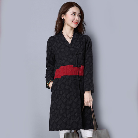 冬季新款女裝民族風(fēng)棉麻純色中長(zhǎng)款棉衣外套 莜菲兒YFE1953 /