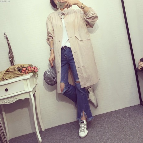 秋裝時(shí)尚潮款韓潮范兒側(cè)開叉薄款長風(fēng)衣外套女裝 批發(fā) /