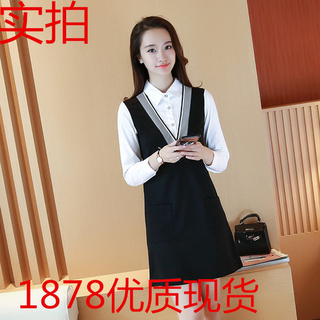秋季新款韓版女士寬松拼接顯瘦口袋翻領(lǐng)長(zhǎng)袖連衣裙潮 /