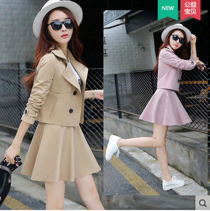 時(shí)尚套裝女秋季新款小香風(fēng)兩件套短款A(yù)字裙小外套裝裙 /