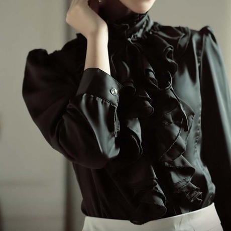 爆款春裝新款女式襯衫長袖雪紡衫大碼襯衫立領(lǐng)花邊宮廷衫廠家批發(fā) /