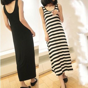 夏季新款牛奶絲長裙 外貿(mào) 歐美風(fēng) 條紋長裙 背心連衣裙批發(fā) /
