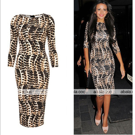 速賣通ebay爆款明星同款豹紋性感包臀修身中袖連衣裙蛇紋連衣裙 /