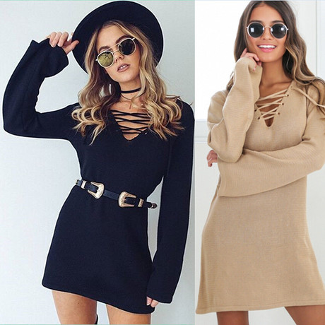 Wish女裝交叉綁帶毛衣連衣裙打底裙女裝 /