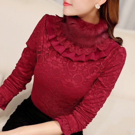 • 童貞兒-兔毛高領(lǐng)蕾絲衫 /