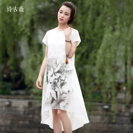詩古薇-水墨印花連衣裙 /
