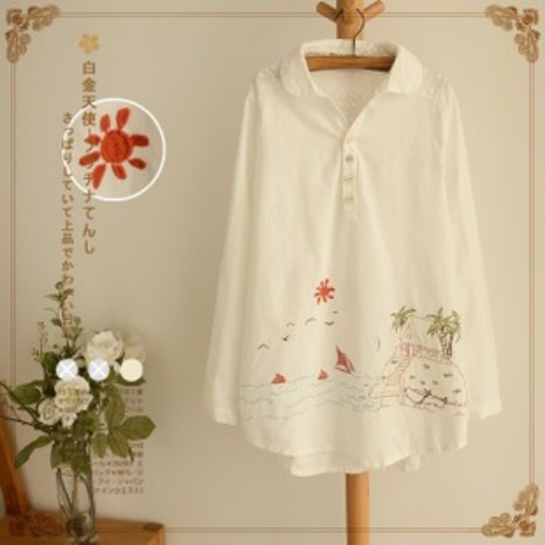 日系森女-刺繡襯衣 /