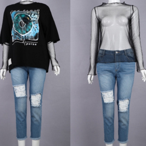 衣脈-破洞修身牛仔褲 /