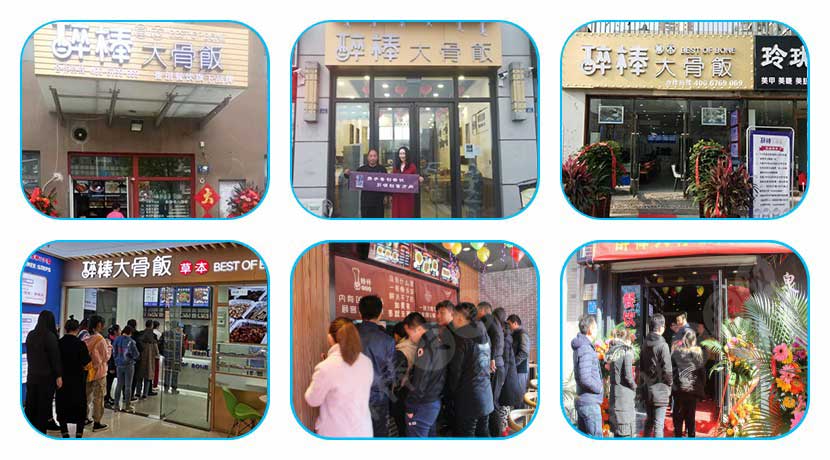 醉棒大骨飯快餐,大骨配飯吃起來更香,特制配方制作,精選一只豬的18-21根豬脊骨,經(jīng)過16味香料在烏金石翁密封中熬制,奇香無比,令人聞香垂涎。還有精致豐富的產(chǎn)品線,早餐、午餐、晚餐、夜宵全覆蓋,一年四季生意好做,不放過每一個(gè)銷售營收點(diǎn)。