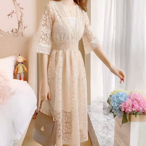 簡(jiǎn)介:星品依人蕾絲連衣裙緊密的花型遇上品質(zhì)的蕾絲,更加美麗輕奢耀眼,清新的色彩,細(xì)致的繡花,演繹出無(wú)限的俏皮動(dòng)人,鏤空的蕾絲風(fēng)格,性感迷人,舉手投足間充滿(mǎn)優(yōu)雅淑女氣質(zhì)。