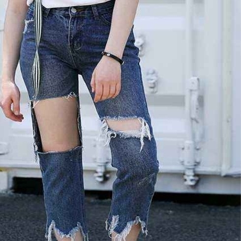 梅姿-破洞牛仔褲 /