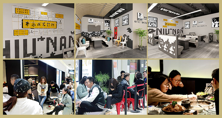 腩潮鮮牛腩火鍋裝飾采用趣味創(chuàng)意的圖文壁紙,吸引著每一位到來(lái)就餐的紳士、女士。簡(jiǎn)單座位,店內(nèi)舒心的環(huán)境,結(jié)合播放著的優(yōu)美音樂,愜意舒心。