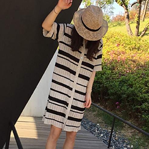 灰小姐-條紋連衣裙 /