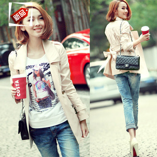 【四季青】春款女裝批發(fā)韓版 OL 雙排扣 氣質(zhì)風(fēng)衣 杏色 卡其色 /