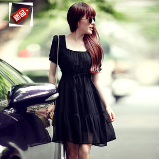 【四季青】韓版 最新款 寬松 顯瘦 雪紡連衣裙-- 黑色 綠色 /