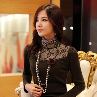 外貿(mào)出口韓版OL氣質(zhì)蕾絲打底衫新款女裝長袖T恤RFS1BQE6 /