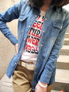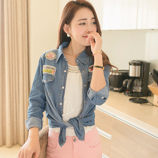 秋冬裝新品 日韓女裝貼布繡花休閑襯衣 百搭寬松牛仔女長袖襯衫 /