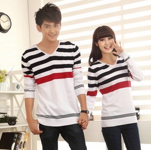 女裝代理2013新款秋季韓版V領(lǐng)拼接長袖毛衣針織衫 情侶裝 /